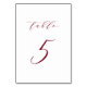 Röd minimalistisk skript bröllopsbord nummer 5 bordsnummer