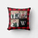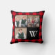 Skapa din egna speciella minnessak med din favorit- familj som foto på denna chic kudder presentera en bakgrund av den röda och svart buffelplädet. Tre kvadrerar foto inramas av en svart gräns, och en fourth kvadrerar är svart med en vitmonogram som är initial för att dig ska personifiera. Byt ut ta provmallfotona med ditt eget. Perfekt för familj eller andra foto. Gör en underbar gåva för familj och vänner. Fotografi©Storytree studior, Stanford, CA