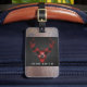 Röd Monogram för huvud för buffelplädhjort Bagagebricka