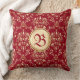 Röd Monogram för ursnygg medeltida guld- damastast Kudde