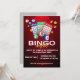 Röd mörk Bingo natt fest inbjudan. Bjud in dina vänner och familj till Bingo natt fest för kul med detta inbjudningskort.
