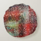 Bild av små pixelliknande fyrkanter som liknar en vägg av plattor eller rödkeramiska produkter, dock med många fläckar och små fläckar som ser ut som sprayfläckar och gummi.