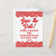 Norsk formgivning, både traditionell och modern, blev mycket populär i Förenade Stater under det fantastiska 1950-talet. Röd norsk "snöre" på snövit, med ett mysigt matchande teckensnitt, ger en unik och vacker bröllop-design.