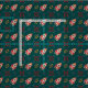 Röd nötknäpparemops på grönt tyg