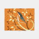 Stiliserad fågelkonst av ett rött bröst nuthatch på ett snurrande mönster gren med orange bakgrund