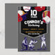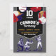 Slå ett hem springa med den här sportiske födelsedagsinbjudan! Perfekt för den lilla sluggaren i ditt liv, den här designen ger en lekfull bild i röd och blå perfekt för en basebolltemad födelsedagsfest. Ta med dig ditt team till en firande fylld med roligt, spel och födelsedagsglädje!