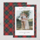 Omfamna tidlös julstämning med detta vackert designade julkort med foto, med en klassisk röd och grön rutig bakgrund och en skarp vit fotoram för ditt favoritfamiljeporträtt. Anpassa med ditt familjenamn, året och en hjärtlig hälsning för att göra det unikt för dig. Det rika tartanmönstret frammanar mysiga vinterkvällar och festliga sammankomster, medan det enda stora fotot håller fokus på dina älskade minnen. Perfekt för att dela värme och gemenskap med vänner och nära och kära under jul- och nyårshelgen.