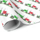 Röd och grön traktor som slår in papper presentpapper