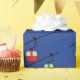 Blå papper med rött och grönt gondolas papper julomslutning.