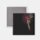 Ett foto av en röd och grönt fyrverkeripjäs som ser ut som en handflatan träd.