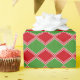 Roligtens "svettningsstygn" ser ut som julen mönster i rött och grönt diamant mönster gör ett enkelt men attraktivt presentband.