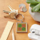 Röd och Grönt Tile Art på Guld Mönster Fyrkantig Silverfärgad Nyckelring