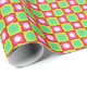 Papper julomslutning med abstraktens grönt och röda fyrkanter i ett mönster som är över och med vita accenter. Det vore en söt för barn.