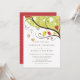 Röd och gul nyckfull bröllopsfest för kärleksfågla inbjudningar