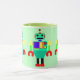 En stilfull grön mugg, med en digital illustration av en färgrik robotleksak. Tillgängliga sammanlagt alternativ. Besöka vårt lager för mer robotmuggar och andra gåvor!