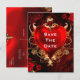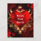 Röd och guld gotisk kärlek hjärta bröllop Spara datum Vykort. Anpassa med valfri text.