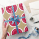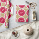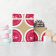 Den här julklappen som omsluter papper erbjuder en festlig design i rött, guld och vitt. Den runda texten lyder "Ha ett mycket God jul" och accentueras med en bild av löv på en röd cirkel. Bakgrunden är guld och kan ändras till vilket annat färg som helst genom att välja Anpassa.