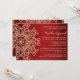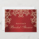 En vacker röd garnet-ruby och guld inbjudningskort för möhippan med en exotisk indisk inspirerad till ornamental sari som mönster med en lotus och blommigt design. Denna elegant och den vackra moderna indiska möhippan inbjudan är perfekt för alla formella eller särskilda tillfällen med ett öster asiskt indonesiskt morokanskt eller arabiskt natttema. Den kan även anpassas till en inbjudan till möhippan par. © Chrissy H. Studios, LLC. Alla Höger reserverade.