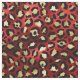 Denna djärva och vackra djurtrycksdesign har en röd bakgrund med svarta och guld leopardfläckar. Platserna liknar dekorfärgerna eller taguariska utskrifter.