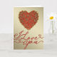 Denna gyllene och röda ros hjärtat “I Love You” design har ett vackert detaljerat hjärta gjort av rosor i par med flödande röd kalligrafi på en mjuk champagne-guld bakgrund. Den eleganta skriften och det blomsterrika hjärtat skapar ett varmt, romantiskt uttryck som uttrycker kärlek på ett tidlöst och stilfullt sätt.