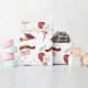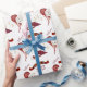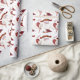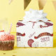 Studenten temaemballering papper med grafik av en banderoll, ballonger, examensbevis med pantartonshölje och konfetti allt gjort i rött och guld på vit bakgrund. Anpassa student och namn.
