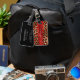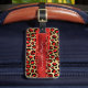 Röd, svart och guld faux foil och svart leopardpunkt med motsvarande glitter-foliepensel för ditt namn. Modern safari-design för hennes småföretag. Ljusröda och gyllene glam bagagetaggar.