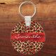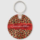 Röd, svart och guld faux foil och svart leopardpunkt med motsvarande glitter-foliepensel för ditt namn. Modern safari-design för hennes födelsedag. Ljusröd och gyllene glam-nyckelring.
