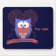 Röd och nyckfull gullig ugglamousepad för blått musmatta
