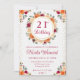 Den här charmiga födelsedagsinbjudan har en rustik vit spetsbakgrund i par med en livfull höstkrans av röda, orange, persikofärgade och krämfärgade blommor. Den cirkulära blomsterbågen skapar en varm och välkomnande mittpunkt, medan glittrande guldfyrverkeri i kanterna ger en festlig och firande känsla. Perfekt för höstfödelsedagar, utomhusfiranden, lador eller någon som älskar mysig höstestetik med en touch av glitter. Anpassa namn, datum och evenemangsinformation för att skapa en vacker och unik souvenir.