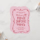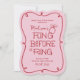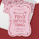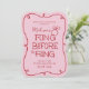 Samla brudens vänner, brudtärnor, systrar, mostrar och fler för en möhippa med denna trendiga röda och rosa "fling before the ring" inbjudan. Handritade element som en lockig kant och en förlovningsring med diamant tillsammans med handstilsfonter ger denna inbjudan en feminin och avspänd känsla samtidigt som den är trendig med sin skissartade doodle-stil. En anpassad QR-kod på baksidan delar evenemangen under helgen eller hänvisar gästerna till att boka hotellrum med en URL efter eget val.