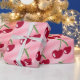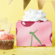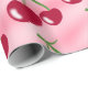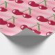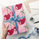 Röda körsbär med grönt på mjuk rosa skapar en repetitiv struktur mönster. Körsbären är jämnt formade och skuggade, vilket ger ett glansigt utseende. Grönten står i kontrast till körsbärets pulserande röda, som ger ett färskt, livligt utseende. Utformningen är enkel men slående, och används ofta i textilier för en lekfull och glad estetik.