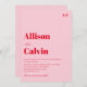 röd och rosa inbjudan till modernt textbröllop