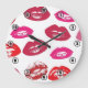 En söt och sexig väggklocka för flickor och unga dam! Röda och rosa sexiga läppstift täckte läppar på vit bakgrund med runda timmars markörer. Du kan lägga till din egen text genom att klicka på "anpassa"-knappen eller lämna den som för ett unikt, sexigt och funktionellt biet av väggkonst!