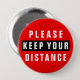 Modern Var god och Behålla din Avstånd stämpel med vit text på röd och svart bakgrund.