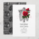 Lekfull vintage blomster skalle gotisk inbjudan för par dusch med accenter i svart och röd, anpassningsbar till ditt evenemang.