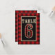 Röd och svart buffélåda rustik bord nummer 6 inbjudningar