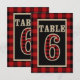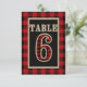 Röd och svart buffelrutig rustik bordsskylt 6 inbjudningar