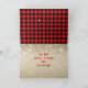 Personalisera detta "Unikt" Rött och svart karotröja Kokopelli julkort! Det har en Röd och svart karotröja Kokopelli som spelar flöjt med noter på en gyllene julbakgrund med vita snöflingor, omgiven av röda och svarta karotröja kanter och de uppfriskande orden..."Fred på jorden"!