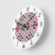 Röd och svart kor-stygn Retro Mönster Rund Klocka