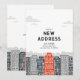 Röd och svart ny adress med tecknad stad inbjudningar