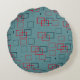 Röd och teal kvadratisk förtjusning rund kudde