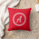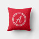 Dekorativ kudde med röd bakgrund och vit anpassningsbar monogram första gången.