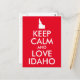 Anpassadet "Behålla Lugn och Kärlek Idaho" med ljust rött och vitt textur med karta-form. Du kan skapa ditt eget souvenir-kort. Du kan ändra bakgrunden färg till personlig av designen.