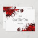 © Sunny Mars Designs - Blommigt Hibiscus: Red on White Bröllop spara datum Post Card - Trendig, snyggt, modern, chic, anpassningsbar för anpassade som tryckts i bröllop bröllop spara datum med vitt och rött, krimson, burgundi, ruby eller maroon, snabbt tropiskt, hibiscus blommigt mot en anpassade vit bakgrund.