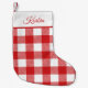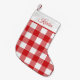 Trendiget rött och vitt buffel klä mönster, julstrumpor. Har vit färg-block överst med malllinje i rött kursivt för namn eller initialer.