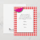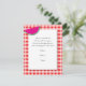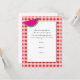 Denna roliga inbjudan har en röd och vit rutig duk bakgrund som påminner om gammaldags somrar. I det övre vänstra hörnet finns en skiva vattenmelon. Din anpassningsbara text är centrerad på en vit mitt. Detta är en idealisk inbjudan för en picknick, familjeåterträff, grillfest, minnesdagshändelse eller för att avsluta sommaren på arbetsdag.