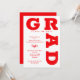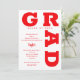 GRAD i fet röd bokstavsstil kurvar runt kanterna på dessa vita examensfestinbjudningar. SE HELA URVALET av färdiga färgkombinationer, pappers tallrikar, servetter, presentaskar och examensfestinbjudningar i vår butik.