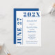 Blå och vita examensfestinbjudningar eller examensmeddelanden, byt bara formuleringen så passar din fest. Många FÄRGER är gjorda åt dig i vår butik.