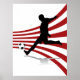 Modern fotbollsdesign med en silhuett av en fotbollsspelare som sparkar en fotboll mot bakgrund av rött och vitt linjer. sgb01
