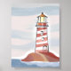 Röd och vit fyr | Strand Hav Akvarell Affisch